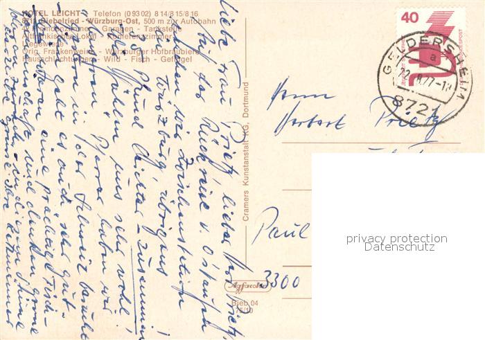 73653325 alte Postkarte Biebelried Hotel Leicht Altfraenkisches Lokal Gewoelbekeller postalisch gelaufen Erhaltung siehe scans [WerneD78] KatCode: 11110009675113