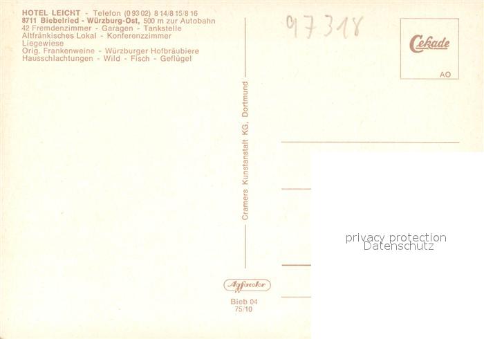 73651074 Biebelried Hotel Leicht Kaminzimmer Treppenaufgang postalisch nicht gelaufen Erhaltung siehe scans [WerneD78] KatCode: 11110009675113