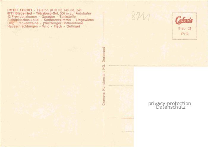 74054366 Biebelried Hotel Leicht Treppenaufgang Gastraum postalisch nicht gelaufen Erhaltung siehe scans [WerneD78] KatCode: 11110009675113