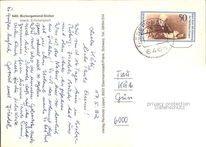 72483570 alte Postkarte Bieber Spessart Panorama Kirche postalisch gelaufen Erhaltung siehe scans KatCode: 11110006435003