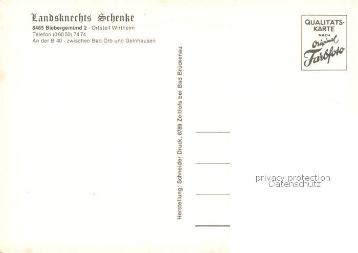 73544716 Biebergemuend Landsknecht Schenke postalisch nicht gelaufen Erhaltung siehe scans [WerneD78] KatCode: 11110006435003