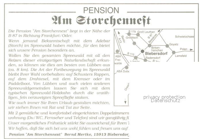 73663364 Biebersdorf Pension am Storchennest postalisch nicht gelaufen Werbekarte (keine Postkarte) Erhaltung siehe scans [LiesaD40] KatCode: 11110012061329