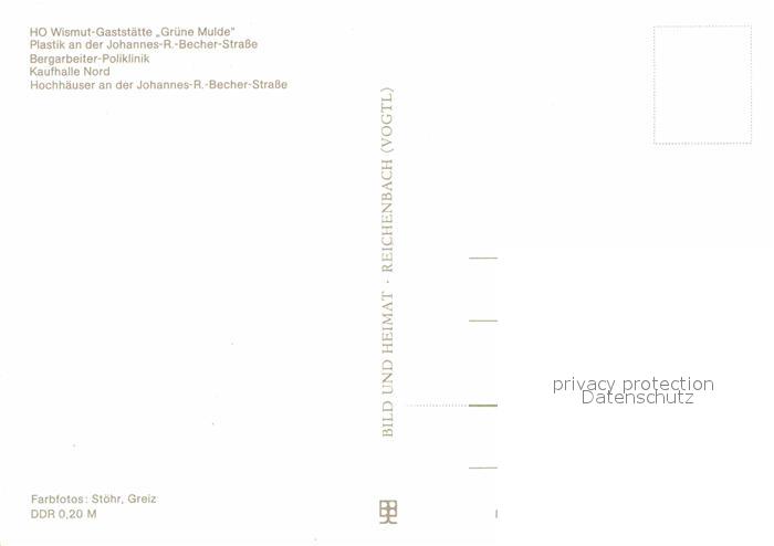 72919439 Bieblach HO Wismut Gaststaette Gruene Mulde Plastik Johannes R Becher Strasse Bergarbeiter Poliklinik Kaufhalle Nord Hochhaeuser postalisch nicht gelaufen Erhaltung siehe scans [FriedD77] KatCode: 11110016052000