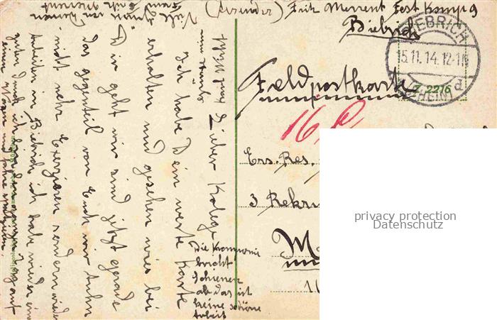 74129650 alte Postkarte Biebrich Rhein WiIESBADEN Hessen Landesdenkmal Herzog Adolf von Nassau Brunnen Feldpost postalisch gelaufen Erhaltung siehe scans [FriedD77] KatCode: 11110006414000