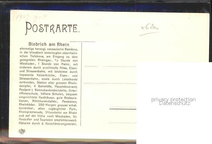 41969968 Biebrich Wiesbaden ehemalige herzogliche Residenz Rheinansicht Dampfer postalisch nicht gelaufen Erhaltung siehe scans KatCode: 11110006414000