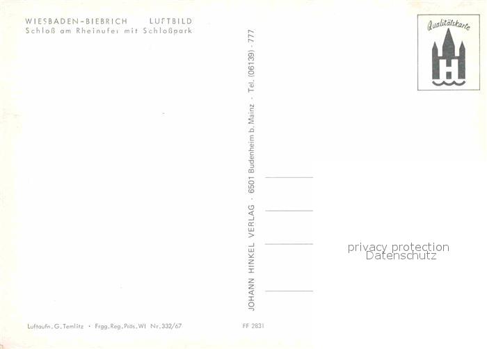 72850942 Biebrich Wiesbaden Fliegeraufnahme Schloss am Rheinufer Schlosspark postalisch nicht gelaufen Erhaltung siehe scans [NatalD47] KatCode: 11110006414000