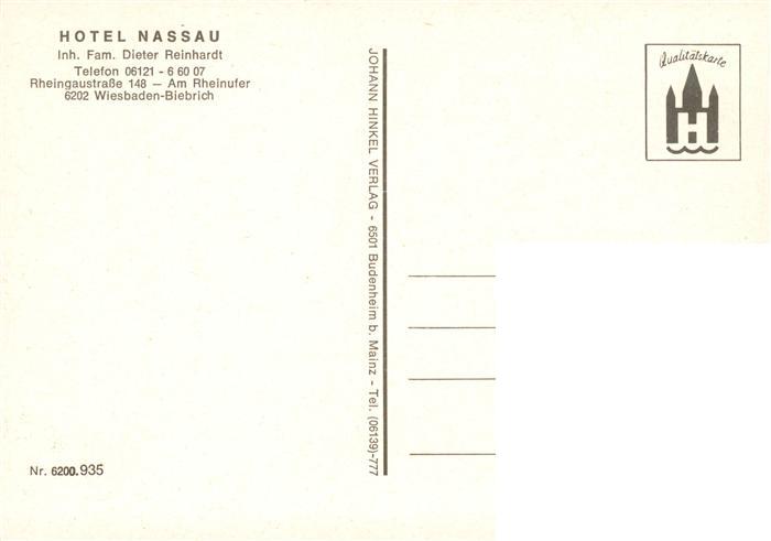 73883799 Biebrich Wiesbaden Hotel Nassau postalisch nicht gelaufen Erhaltung siehe scans [FriedD77] KatCode: 11110006414000