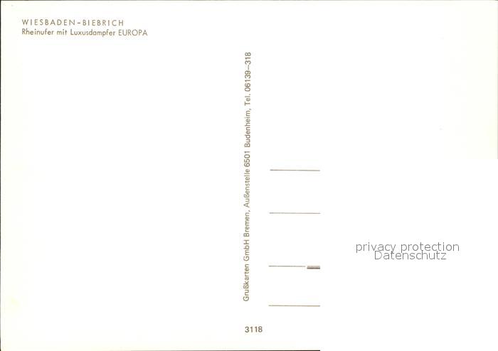 72570403 Biebrich Wiesbaden Rheinufer mit Luxusdampfer Europa postalisch nicht gelaufen Erhaltung siehe scans [LiesaD40] KatCode: 11110006414000