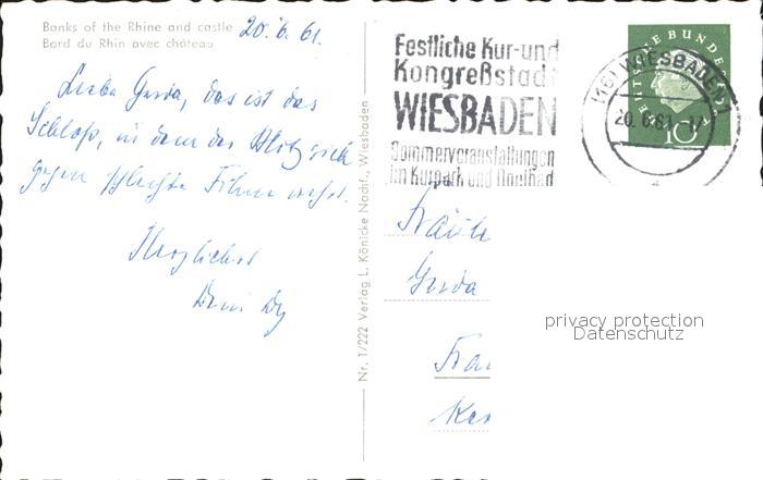 72097977 alte Postkarte Biebrich Wiesbaden Rheinufer Schloss postalisch gelaufen Erhaltung siehe scans KatCode: 11110006414000