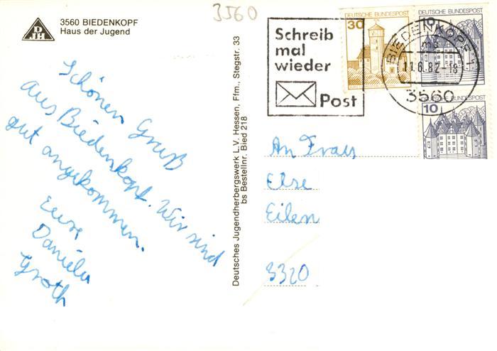 73913451 Biedenkopf Lahn Haus der Jugend Gastraeume Bettenlager postalisch gelaufen Erhaltung siehe scans [FriedD77] alte Postkarte Frie Katcode 11110006534004