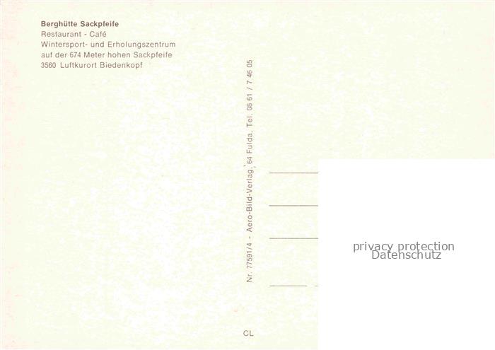 74137140 Biedenkopf Lahn Hessen Berghuette Sackpfeife Gaststube Terrasse Wintersport Aussichtsturm postalisch nicht gelaufen Erhaltung siehe scans [FriedD77] KatCode: 11110006534004