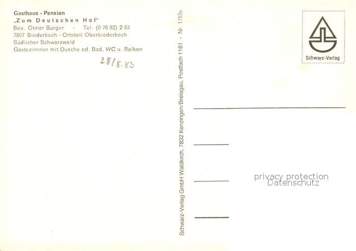 73615841 Biederbach Schwarzwald Gasthaus Pension Zum Deutschen Hof Terrasse Gaststube Panorama postalisch nicht gelaufen Erhaltung siehe scans [WerneD78] KatCode: 11110008316003