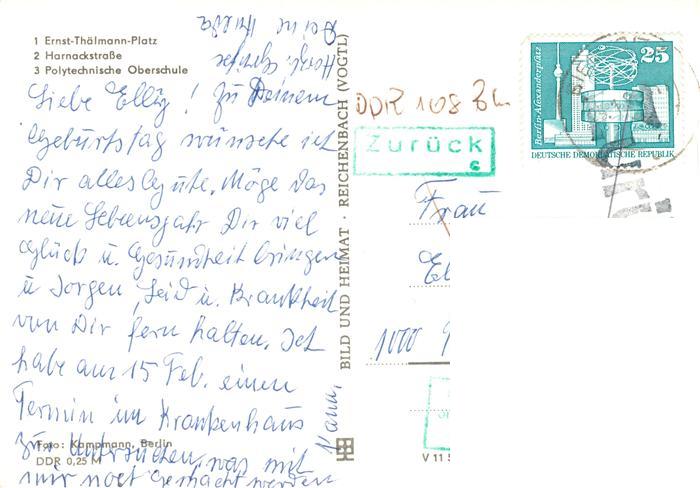 73888511 alte Postkarte Biederitz Ernst Thaelmann Platz Harnackstrasse Polytechnische Oberschule postalisch gelaufen Erhaltung siehe scans [WerneD78] KatCode: 11110015086005