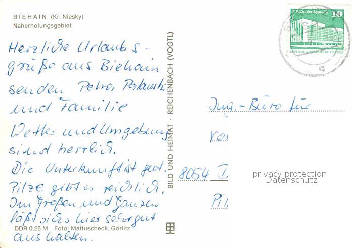 72637031 alte Postkarte Biehain Naherholungsgebiet postalisch gelaufen Erhaltung siehe scans [AndreD76] KatCode: 11110014284280