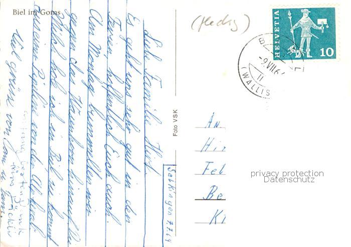 13853136 alte Postkarte Biel VS Panorama Ortsansicht mit Kirche Alpen postalisch gelaufen Erhaltung siehe scans [FriedD77] KatCode: 11470230705424