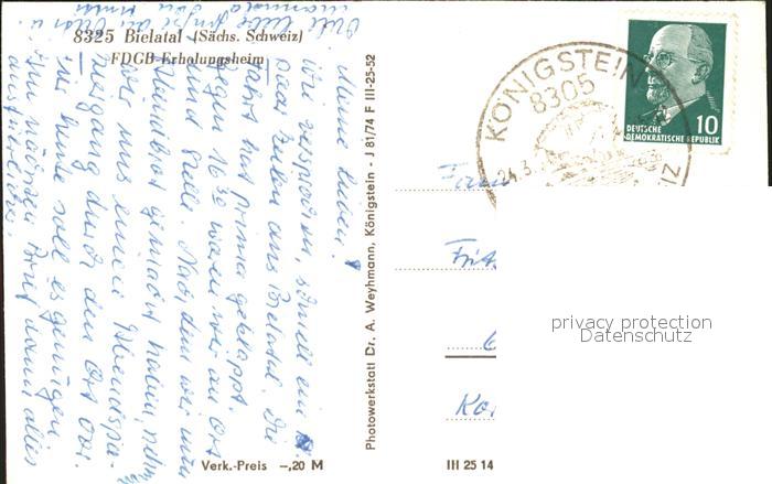 71893315 alte Postkarte Bielatal FDGB Erholungsheim postalisch gelaufen Erhaltung siehe scans KatCode: 11110014287290