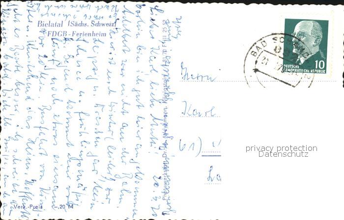 72394222 alte Postkarte Bielatal FDGB Ferienheim postalisch gelaufen Erhaltung siehe scans KatCode: 11110014287290