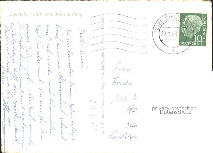 72318760 alte Postkarte BIELEFELD CITY Blick vom Johannisberg postalisch gelaufen Erhaltung siehe scans KatCode: 11110005711000