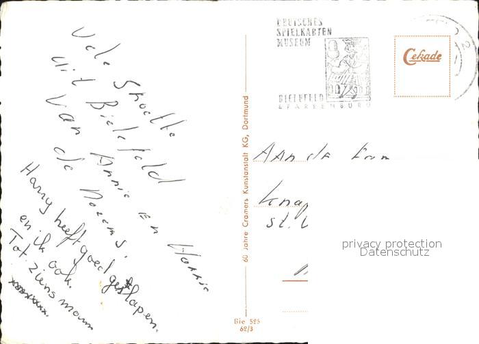 72468913 alte Postkarte BIELEFELD CITY Huenenburg Jahnplatz Haus der Technik Sparrenburg Botanischer Garten Bahnhofsvorplatz postalisch gelaufen Erhaltung siehe scans KatCode: 11110005711000