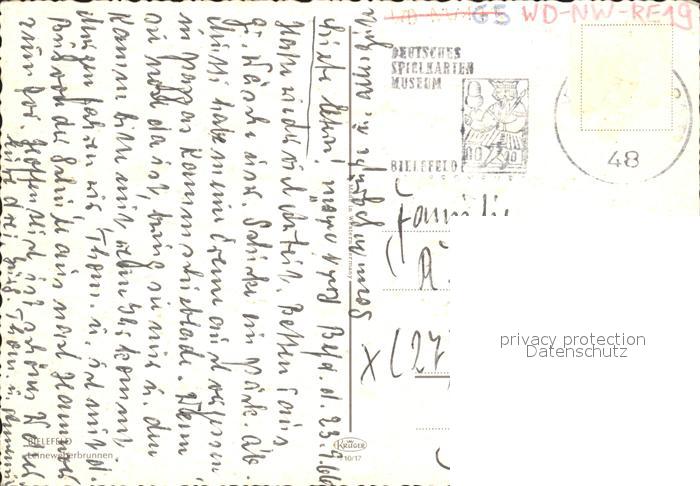 72229534 alte Postkarte BIELEFELD CITY Leineweberbrunnen postalisch gelaufen Erhaltung siehe scans KatCode: 11110005711000
