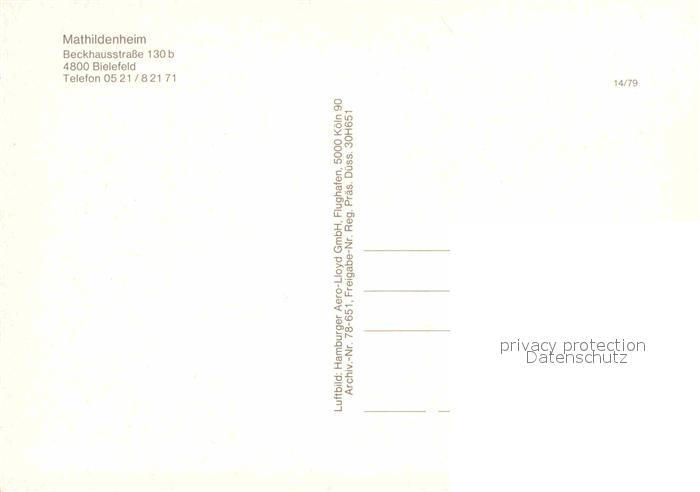 72750394 BIELEFELD CITY Mathildenheim Fliegeraufnahme postalisch nicht gelaufen Erhaltung siehe scans [FriedD77] KatCode: 11110005711000