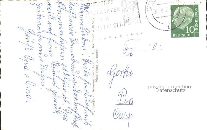 72124670 alte Postkarte BIELEFELD CITY Oetker Konzernhalle Teich postalisch gelaufen Erhaltung siehe scans KatCode: 11110005711000