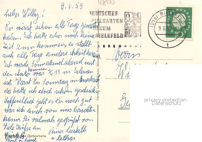 73695960 BIELEFELD CITY Oetkerhalle postalisch gelaufen Erhaltung siehe scans [LiesaD40] alte Postkarte Lies Katcode 11110005711000
