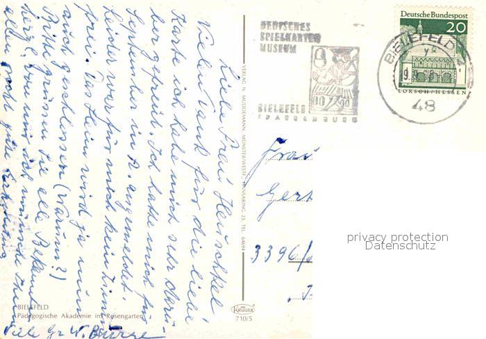 72622722 alte Postkarte BIELEFELD CITY Paedagogische Akademie im Rosengarten postalisch gelaufen Erhaltung siehe scans [WerneD78] KatCode: 11110005711000