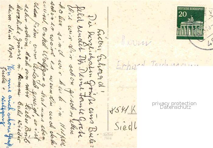 72764479 alte Postkarte BIELEFELD CITY Rathaus Stadttheater postalisch gelaufen Erhaltung siehe scans [AndreD76] KatCode: 11110005711000