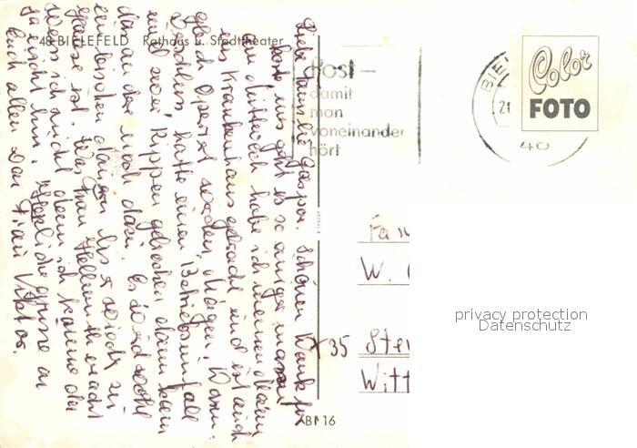72628408 alte Postkarte BIELEFELD CITY Rathaus Stadttheater postalisch gelaufen Erhaltung siehe scans [NatalD47] KatCode: 11110005711000