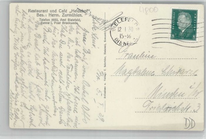 40688136 BIELEFELD CITY Restaurant Cafe Heidehof postalisch gelaufen Alte Ansichtskarte Postkarte alte Postkarte Katcode 11110005711000