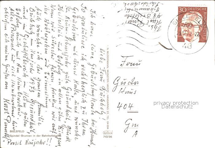 71975604 alte Postkarte BIELEFELD CITY Spindel Brunnen Bahnhofstrasse postalisch gelaufen Erhaltung siehe scans KatCode: 11110005711000