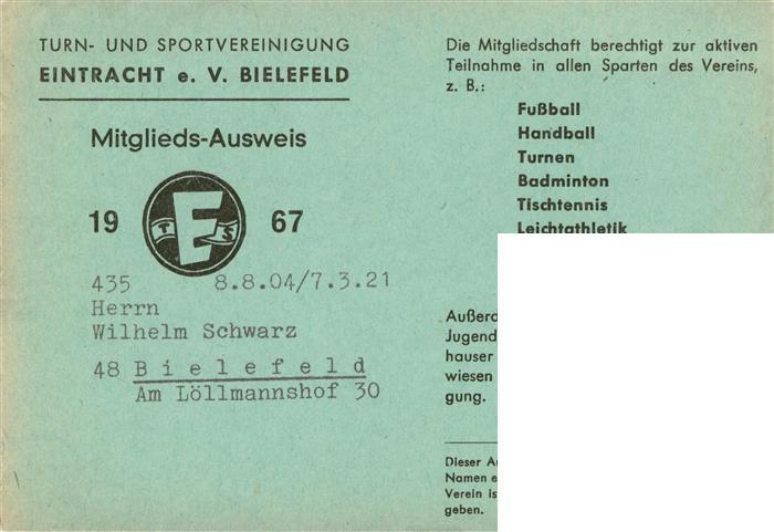 73892500 BIELEFELD CITY Turn und Sportvereinigung Eintracht eV Bielefeld postalisch nicht gelaufen Werbekarte (keine Postkarte) Erhaltung siehe scans [WerneD78] Werbekarte (keine Postkarte) Wern Katcode 11110005711000