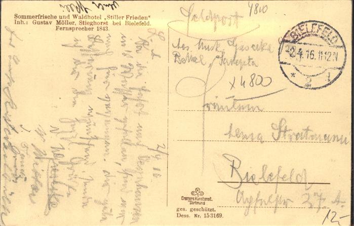 41493726 BIELEFELD CITY Weg zum Stillen Frieden Feldpost16 postalisch gelaufen Erhaltung siehe scans Alte Ansichtskarte Postkarte alte Postkarte hz_W Katcode 11110005711000