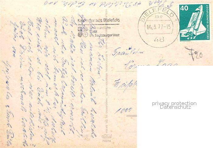 72903872 alte Postkarte Bielefeld Jahnplatz Rathaus Stadttheater Altstaedter Kirchplatz Sparrenburg postalisch gelaufen Erhaltung siehe scans [AndreD76] KatCode: 11110005711000