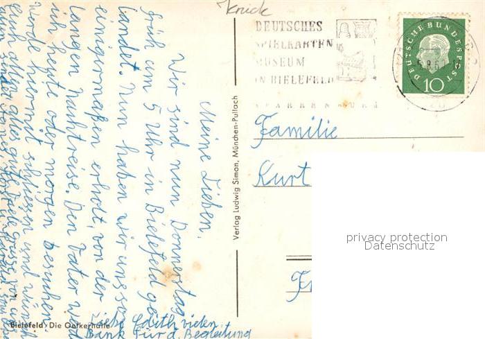 73103079 alte Postkarte Bielefeld Oetkerhalle postalisch gelaufen Erhaltung siehe scans [KathaD81] KatCode: 11110005711000