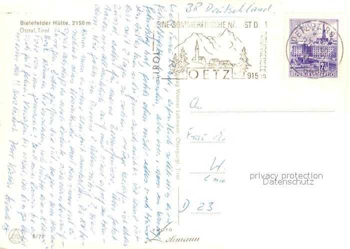 73523795 alte Postkarte Bielefelder H?tte Otztal postalisch gelaufen Erhaltung siehe scans [LiesaD40] KatCode: