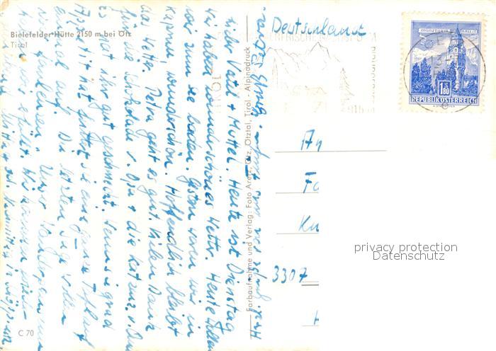 73231768 alte Postkarte Bielefelder Huette bei oetz postalisch gelaufen Erhaltung siehe scans [LiesaD40] KatCode: 11390334070214