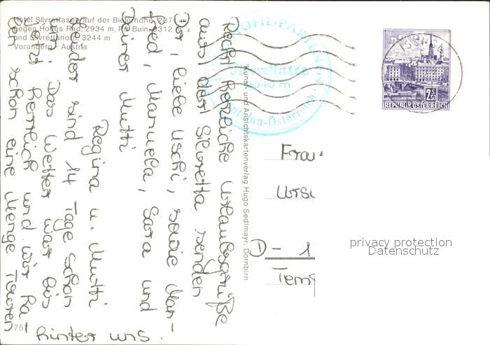 72113802 alte Postkarte Bielerhoehe Hotel Silvrettasee Hohes Rad Piz Buin Silvrettahorn postalisch gelaufen Erhaltung siehe scans KatCode: 11390