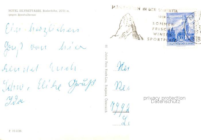 73835771 alte Postkarte Bielerhoehe Hotel Silvrettasee mit Rosstalferner postalisch gelaufen Erhaltung siehe scans [WerneD78] KatCode: 11390
