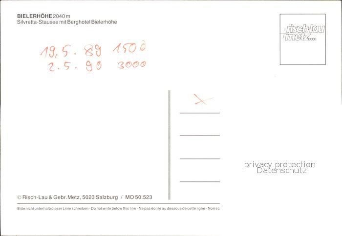 71977964 Bielerhoehe Silvretta Stausee Berghotel Bielerhoehe Hohes Rad Piz Buin postalisch nicht gelaufen Erhaltung siehe scans KatCode: 11390