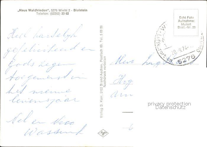 72168189 alte Postkarte Bielstein Haus Waldfrieden postalisch gelaufen Erhaltung siehe scans KatCode: 11110005374048