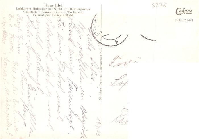 73878203 alte Postkarte Bielstein Wiehl Gaststaette Haus Idel Garten Luftkurort postalisch gelaufen Erhaltung siehe scans [FriedD77] KatCode: 11110005374048