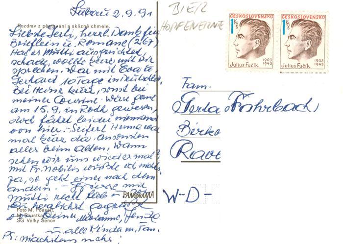 73923923 alte Postkarte Bier Beer Biere Hopfenernie postalisch gelaufen Erhaltung siehe scans [IrynaD87] KatCode: 22280000000100