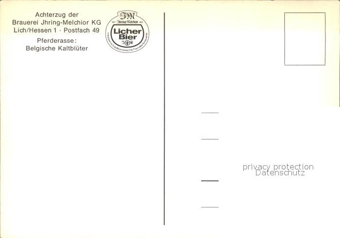 Bier Brauerei-Pferdegespann Ihring-Melchior KG Belgische Kaltblueter postalisch nicht gelaufen Erhaltung siehe scans