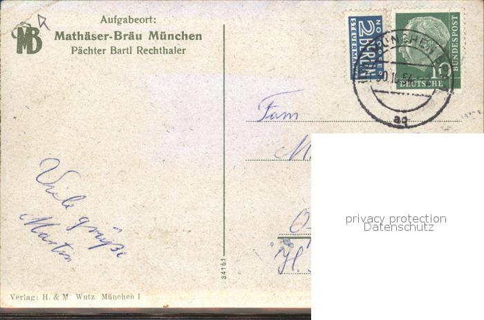alte Postkarte Bier Muenchener Mathaeserbraeu Urkunde postalisch gelaufen