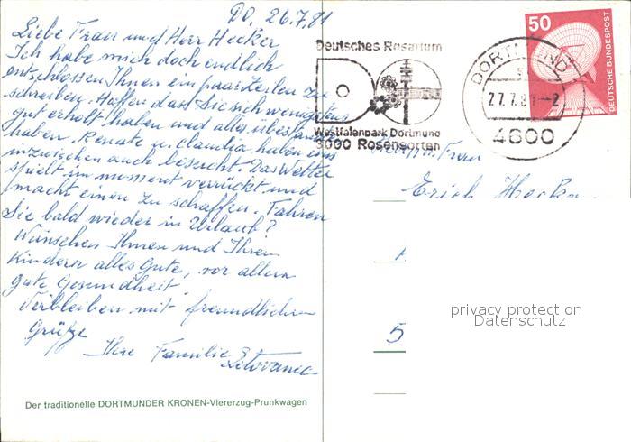 alte Postkarte Bier Pilskrone Dortmund Brauereigespann postalisch gelaufen Erhaltung siehe scans