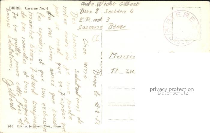 12528898 Biere VD Caserne No 4 Soldaten postalisch nicht gelaufen Erhaltung siehe scans Frie Katcode 11470240760848
