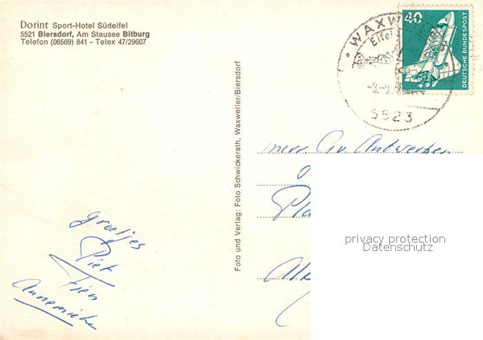 72932525 alte Postkarte Biersdorf See Dorint Sport Hotel Suedeifel postalisch gelaufen Erhaltung siehe scans [WerneD78] KatCode: 11110007232015