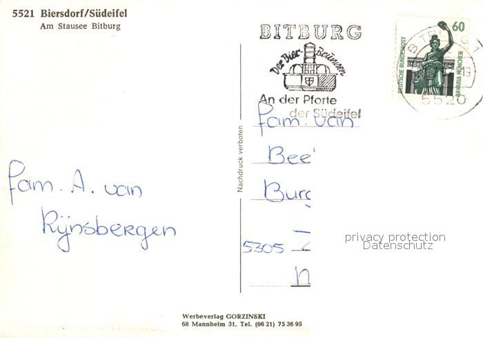 72940524 alte Postkarte Biersdorf See Panorama Stausee Bitburg postalisch gelaufen Erhaltung siehe scans [WerneD78] KatCode: 11110007232015